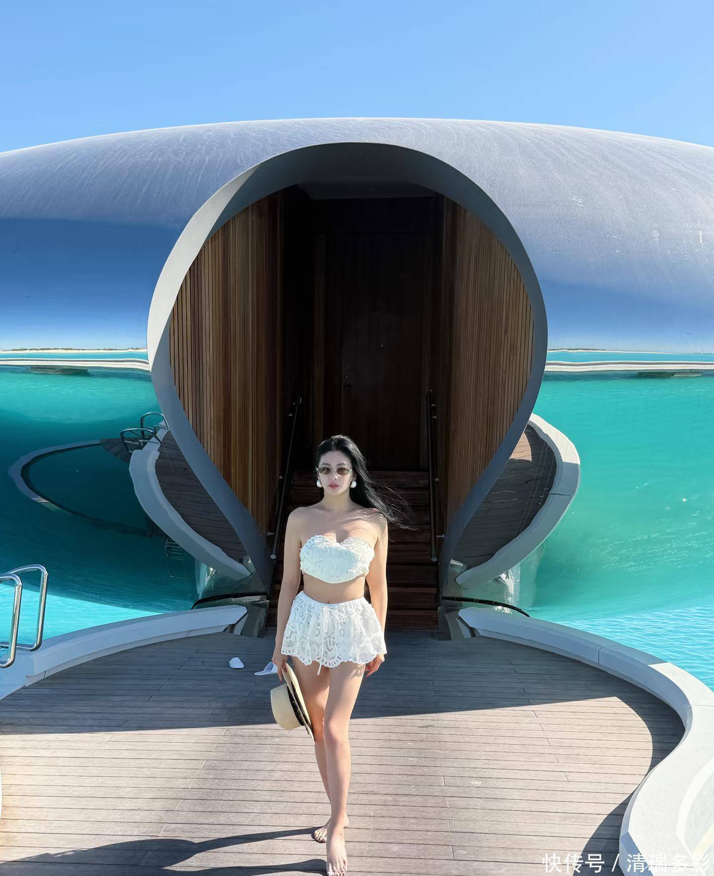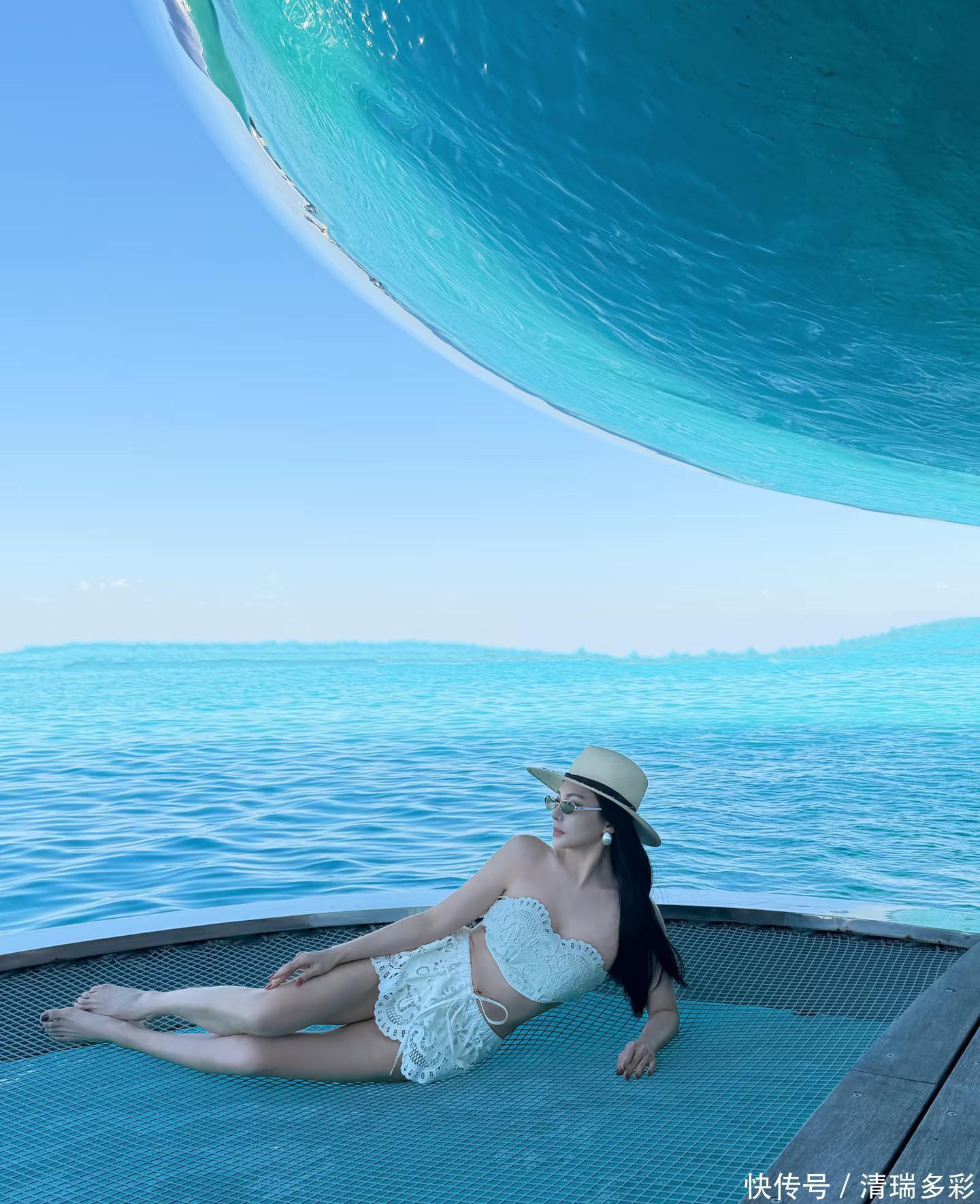 37岁,两个孩子的妈,可你压根看不到所谓“妈味”。她穿白色蕾丝分体泳装站在海边,阳光洒下来,长发微扬,腿长腰细,随意一躺,竟有几分美人鱼的慵懒与灵动。谁说妈妈就得收敛光芒?她偏要明媚、自由,甚至带着点少女感的娇羞,却一点不违和。